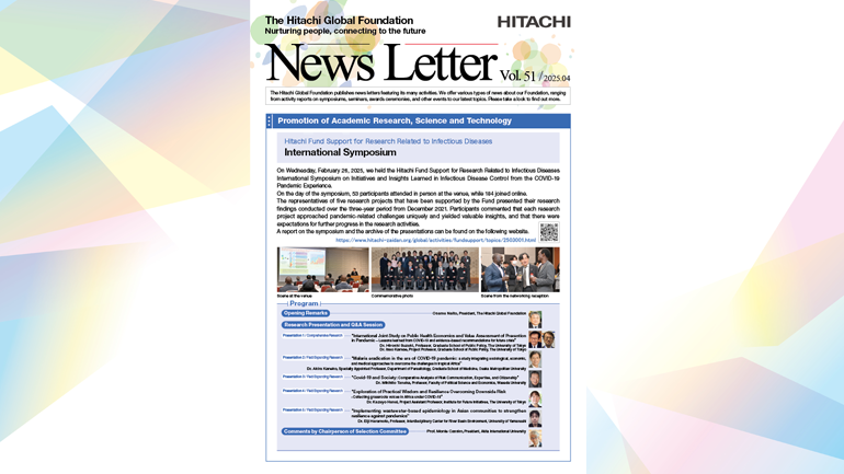 the Hitachi Global Foundation is our programs to respond to social needs together with the experience and knowledge of the Hitachi Group in the Foundation’s three key areas, namely “Promotion of Academic Research, Science and Technology,” “Human Development” and “Realization of an Inclusive Society” while inheriting the passion and philosophy of the founders of the five organizations, where the devotion of Hitachi’s foundations all started.