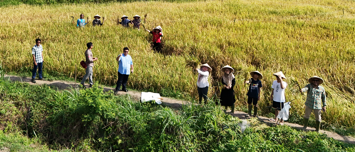 Implementation of nano silica in paddy’s plantation (harvesting period), I am the one in the right hand side using green shirt