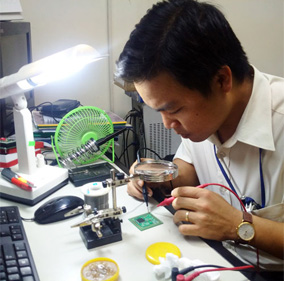 My R&D in lab: testing my chip after design and fabrication (2014)